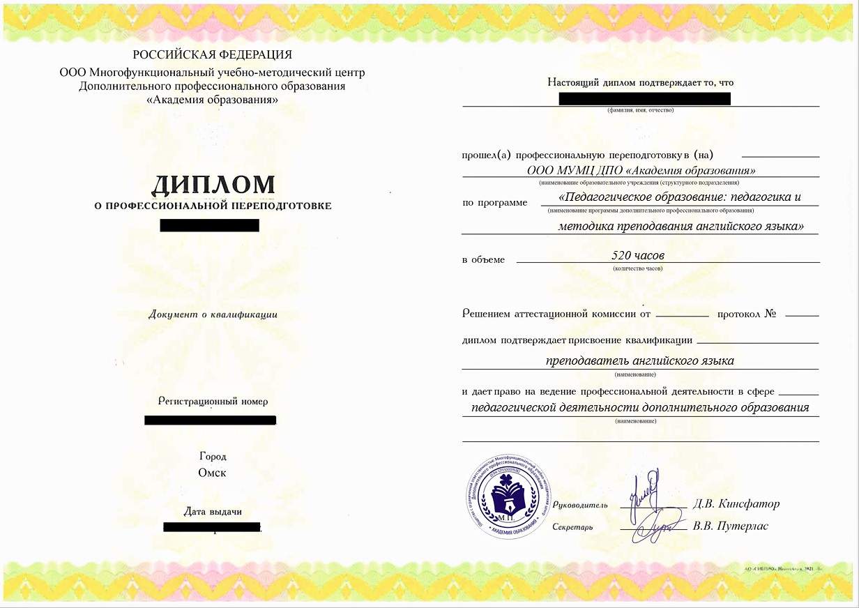 - Диплом о профессиональной переподготовке установленного государством образца. Срок действия: бессрочно